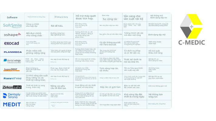 Dưới đây là Top 10 phần mềm CAD/CAM nha khoa được đánh giá cao hiện nay, sắp xếp theo tính ứng dụng thực tế, khả năng mở rộng và mức độ phù hợp với thị trường Việt Nam (không theo thứ tự quảng bá hãng).